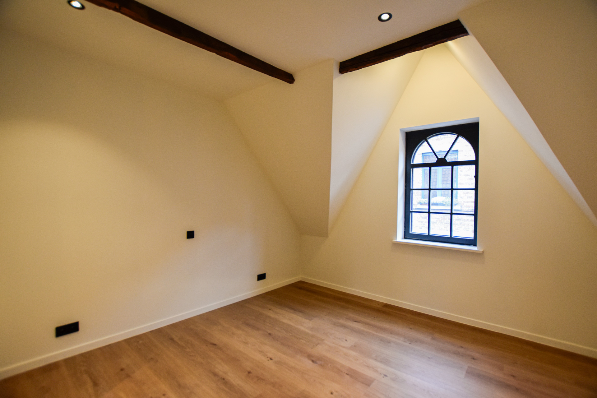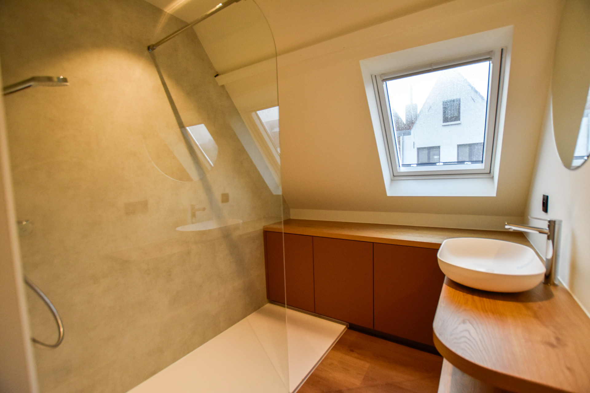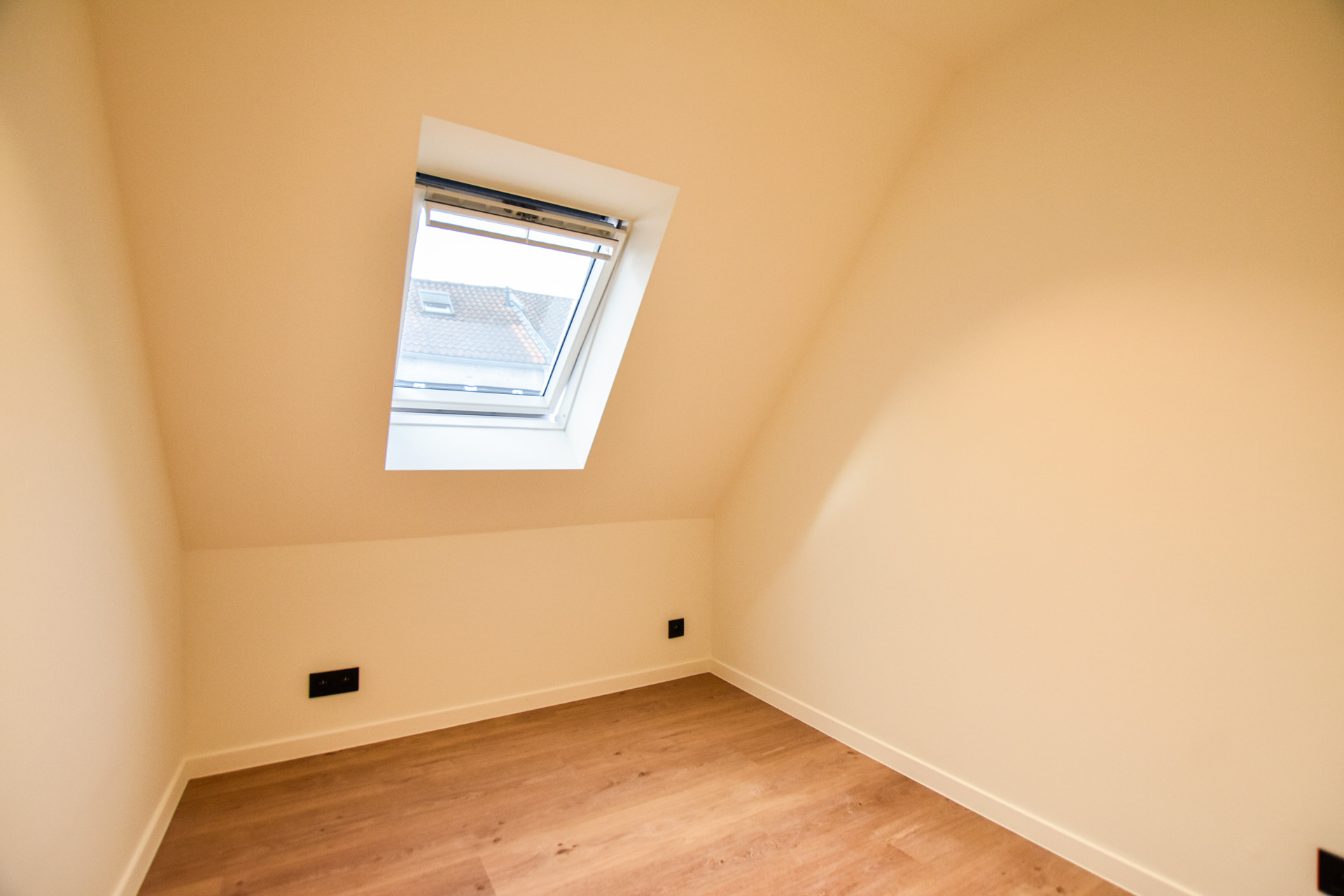 Op de eerste verdieping vind je een ruime en sfeervolle slaapkamer, voorzien van een mooie parketvloer die het warme en huiselijke karakter van de woning versterkt. Daarnaast is er een extra kamer die volledig naar eigen behoefte kan worden ingericht. Denk aan een dressing, thuiskantoor of hobbyruimte. De woning beschikt over een stijlvolle, hedendaagse badkamer, die tot in de puntjes werd afgewerkt. Je vindt er een moderne waskom op een strak meubel, voldoende opbergruimte, een ruime inloopdouche met glazen wand en eigentijdse armaturen die perfect passen bij de rustige en uitstraling van de ruimte. Ook buiten is het aangenaam vertoeven. De woning beschikt over een zongerichte buitenruimte waar je heerlijk kunt ontspannen.