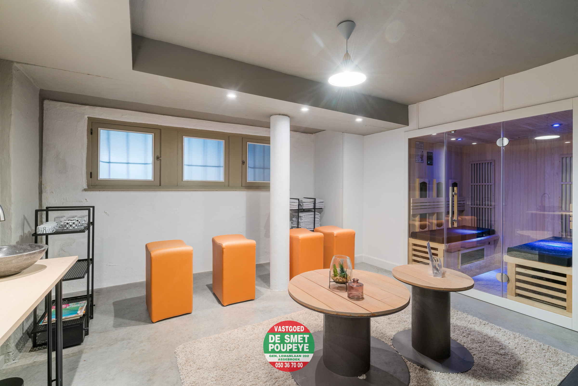 Op de eerste verdieping bevindt zich een badkamer, een aparte doucheruimte en drie slaapkamers, waarvan één met ensuite badkamer. Het tweede verdiep, volledig afsluitbaar, omvat opnieuw drie slaapkamers, elk met een eigen badkamer — ideaal voor een groot gezin, gasten of verhuurformules.In het kelderniveau vindt u een wellnessruimte, ontspanningsruimte en extra berging.