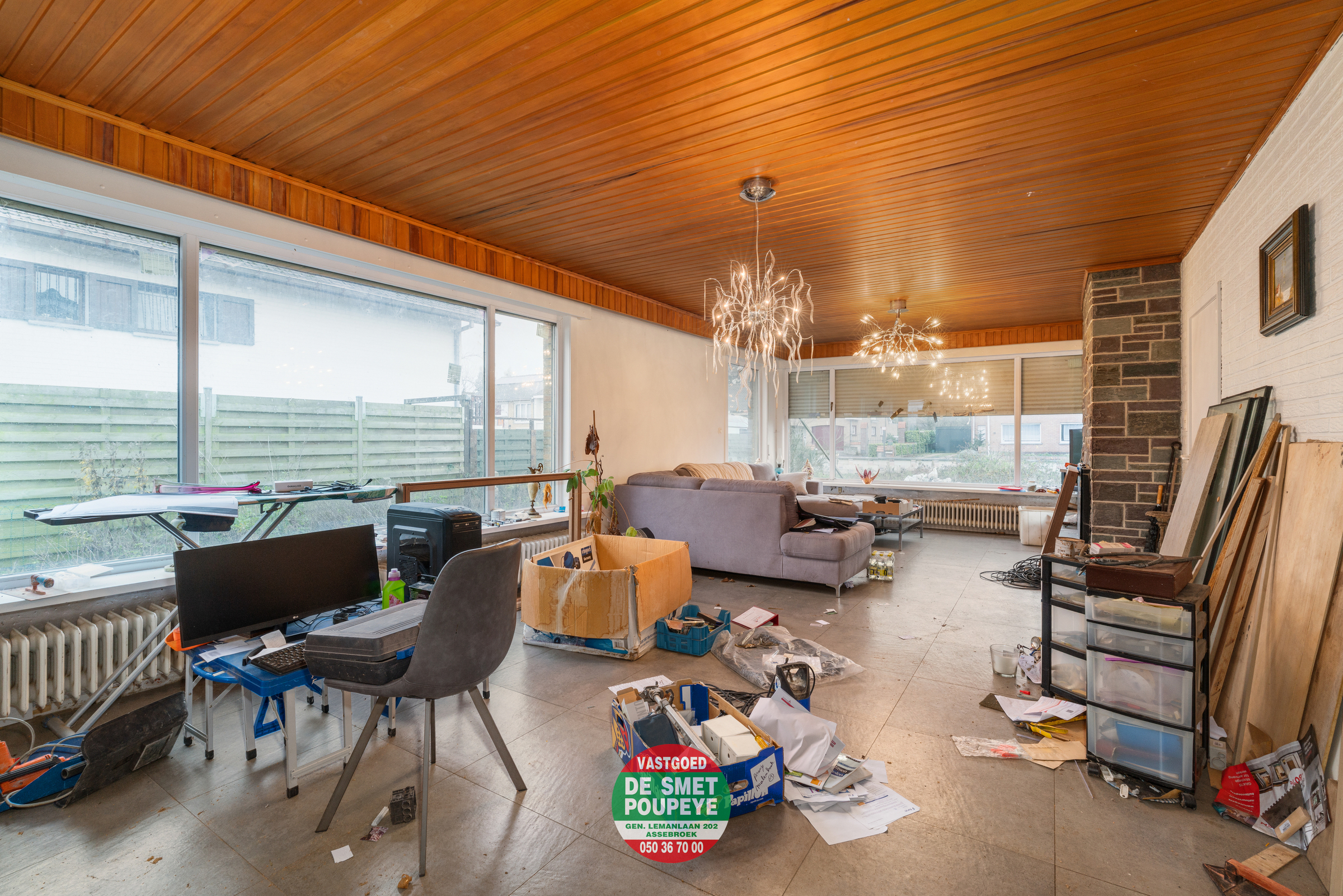Op een uitzonderlijk ruim en zonnig perceel van maar liefst 959 m² bevindt zich deze alleenstaande bungalow in het hart van Sijsele (Damme). De woning ligt op wandelafstand van scholen, winkels en supermarkten en combineert deze centrale ligging met een prachtig, open zicht op achterliggend agrarisch gebied, wat garant staat voor rust, privacy en een groen vergezichten