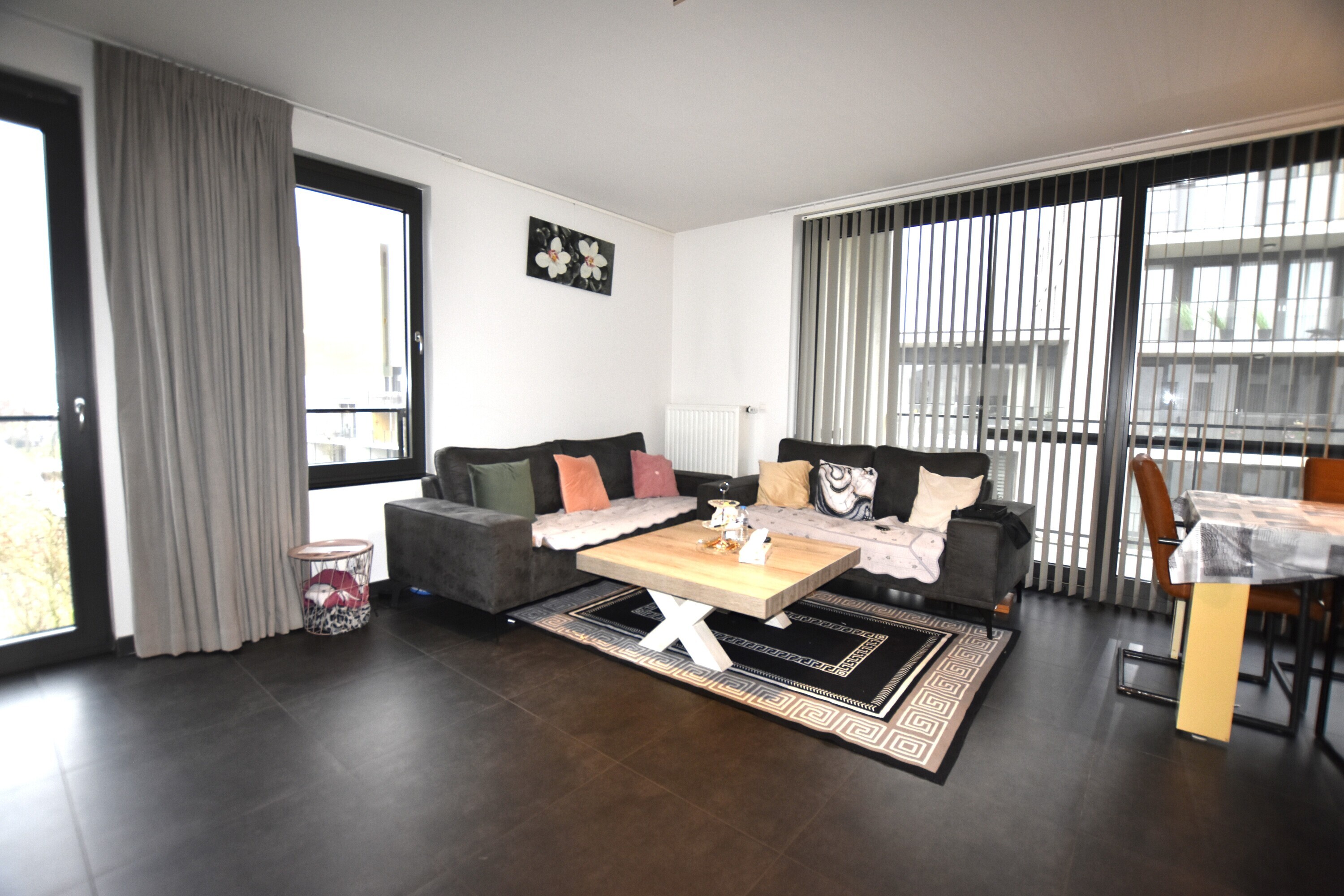 Bij het binnenkomen wordt u verwelkomd in een verzorgde inkomhal met gastentoilet. De royale leefruimte vormt het hart van het appartement: een plek waar u kunt ontspannen en genieten van het open zicht. Aansluitend vindt u een volledig ingerichte keuken, uitgerust met alle nodige voorzieningen. Naast de keuken bevindt zich een praktische berging met aansluiting voor wasmachine en droogkast, wat zorgt voor extra comfort.