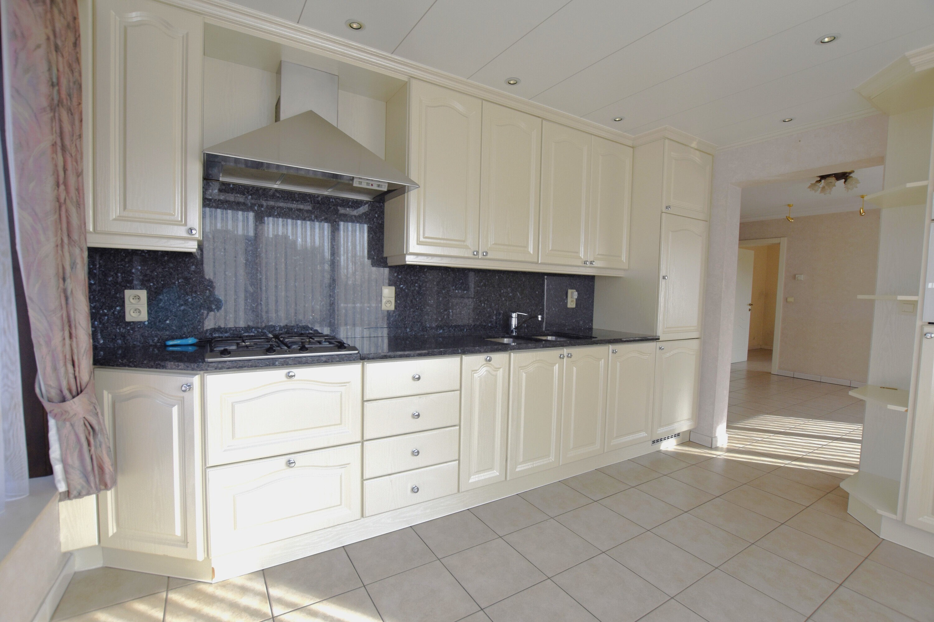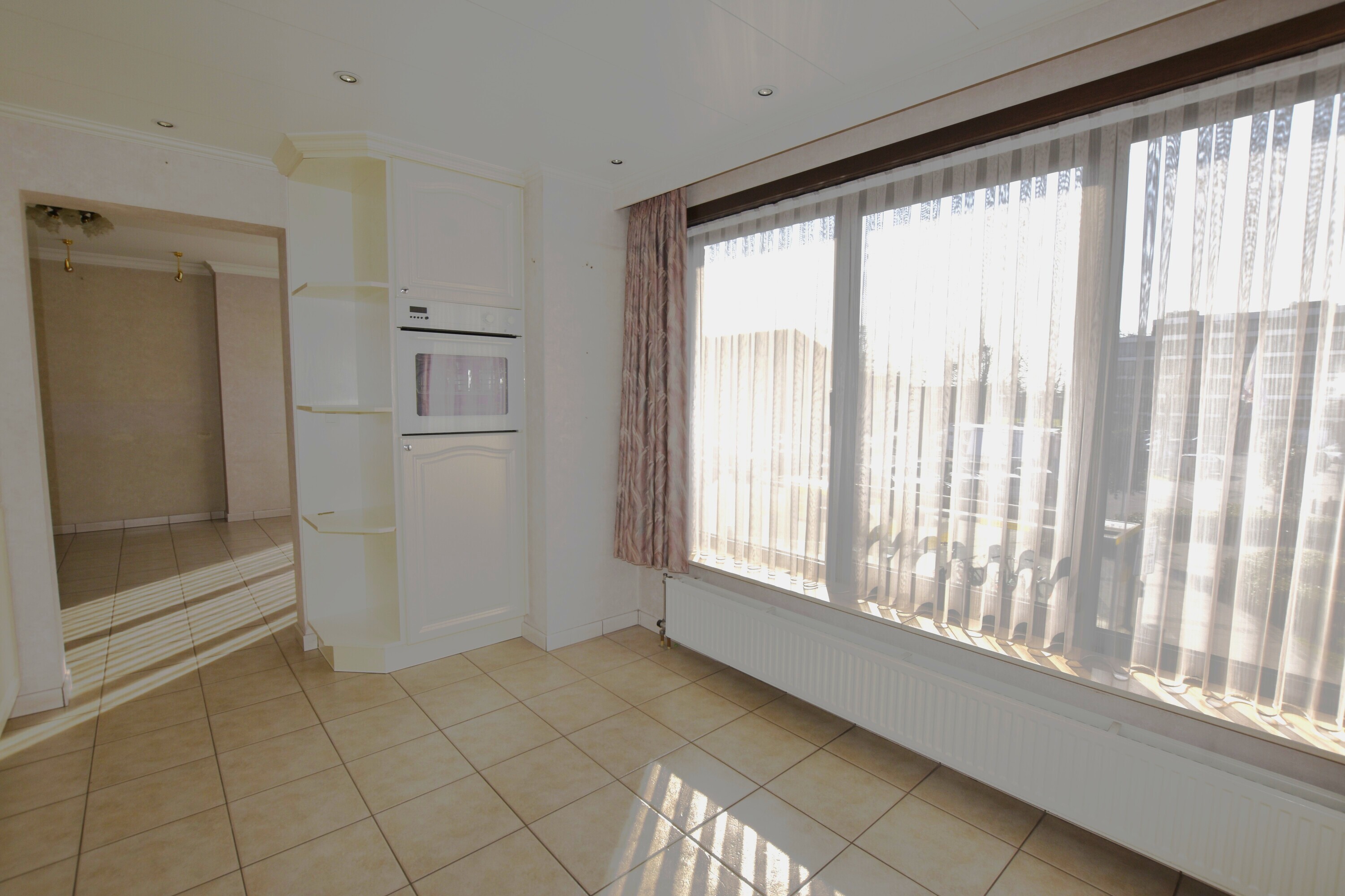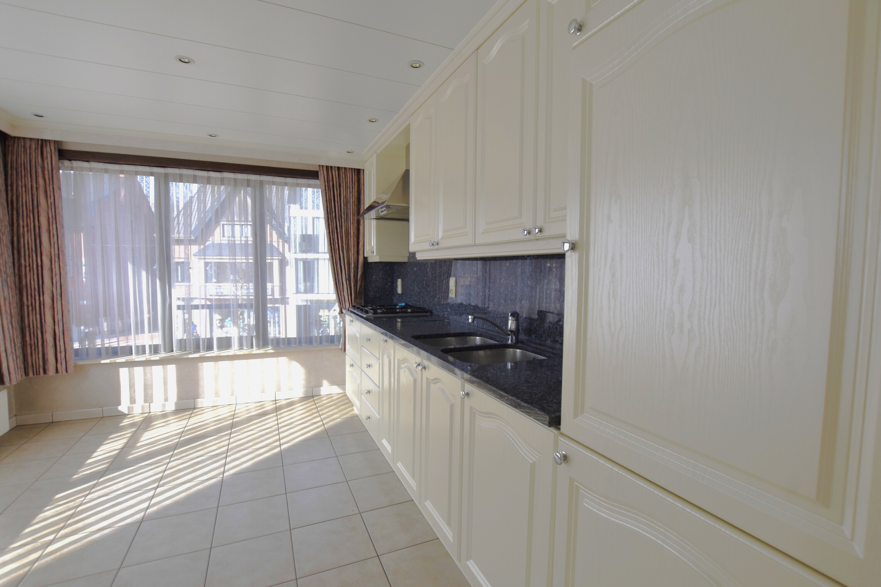 Aansluitend bevindt zich de gesloten keuken, praktisch ingericht en volledig uitgerust met een oven, gasfornuis, dampkap en koelkast. Het appartement beschikt over twee comfortabele slaapkamers, elk voorzien van een eigen terras, wat zorgt voor extra lichtinval en een gevoel van ruimte. De badkamer is ingericht met een comfortabele douche en een dubbele lavabo. Bovendien biedt de privatieve kelderberging bijkomende opbergruimte.