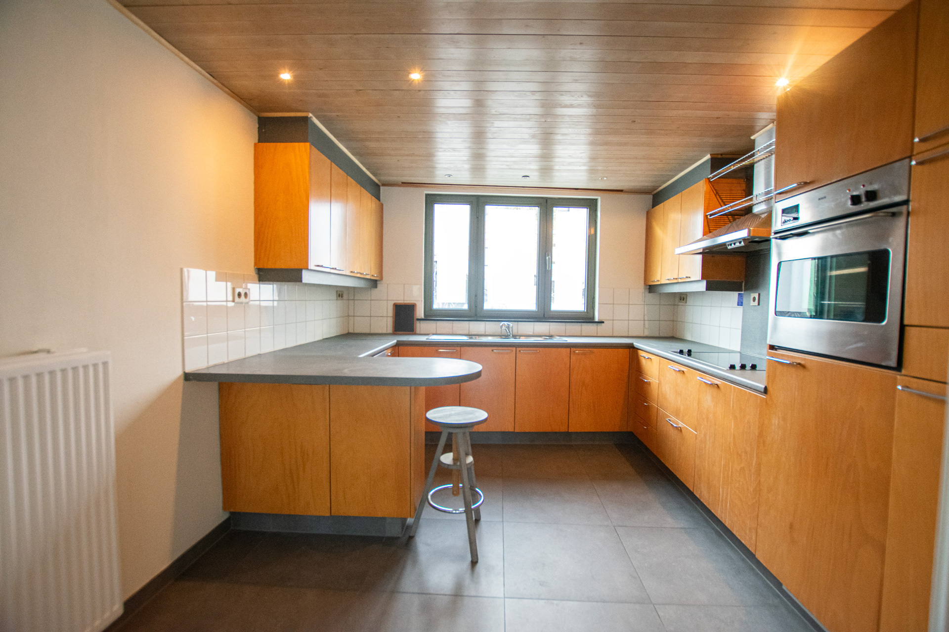 Deze ruime rijwoning biedt een combinatie van ruimte, comfort en gezelligheid, ideaal voor gezinnen of wie op zoek is naar extra leefruimte. Bij het binnenkomen wordt u verwelkomd in een uitnodigende inkomhal met gastentoilet. Op het gelijkvloers bevindt zich een lichtrijke living die rechtstreeks toegang biedt tot het terras en de gezellige tuin met vijver en hobbyruimte - een heerlijke plek om te ontspannen of creatief bezig te zijn. Aansluitend vindt u een volledig ingerichte keuken met combi-oven, vaatwasmachine, keramische kookplaat en koelkast, evenals een praktische berging.