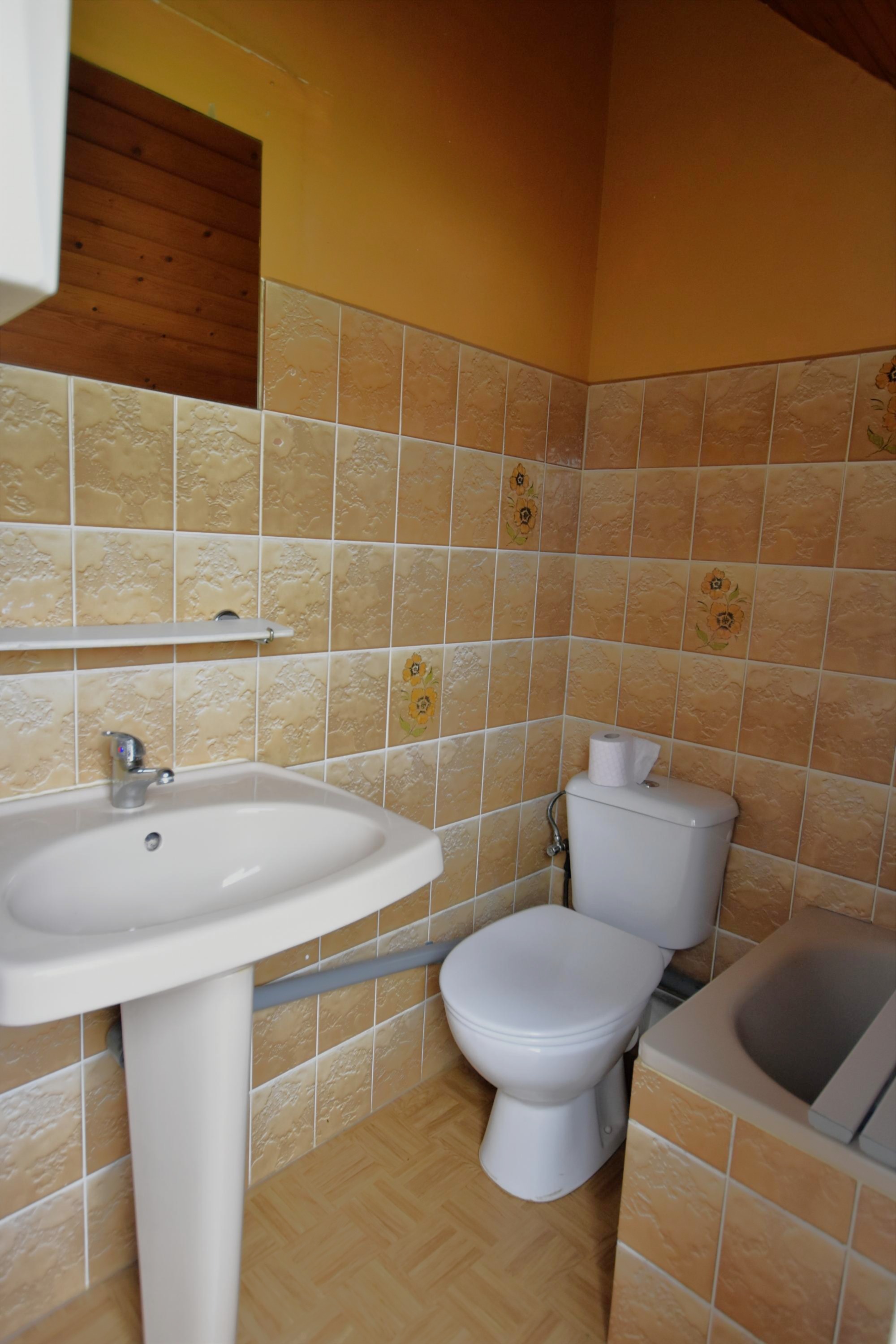 - Badkamer met lavabo, toilet en bad