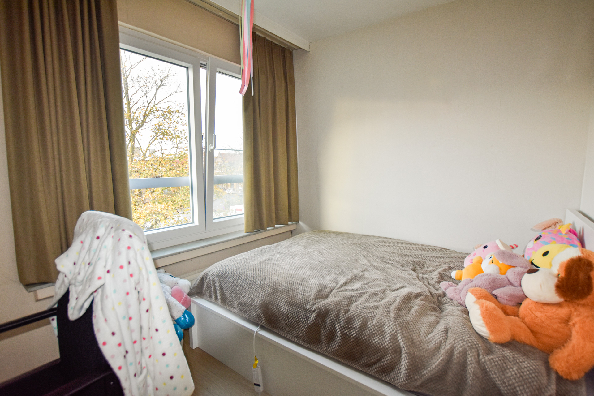 Het appartement beschikt over twee slaapkamers, beide ruim genoeg voor een dubbel bed. Daarnaast is er een extra bureauruimte, perfect voor thuiswerk, hobby’s of als multifunctionele kamer. De badkamer is uitgerust met een ligbad, lavabo in een meubel en een tweede toilet.