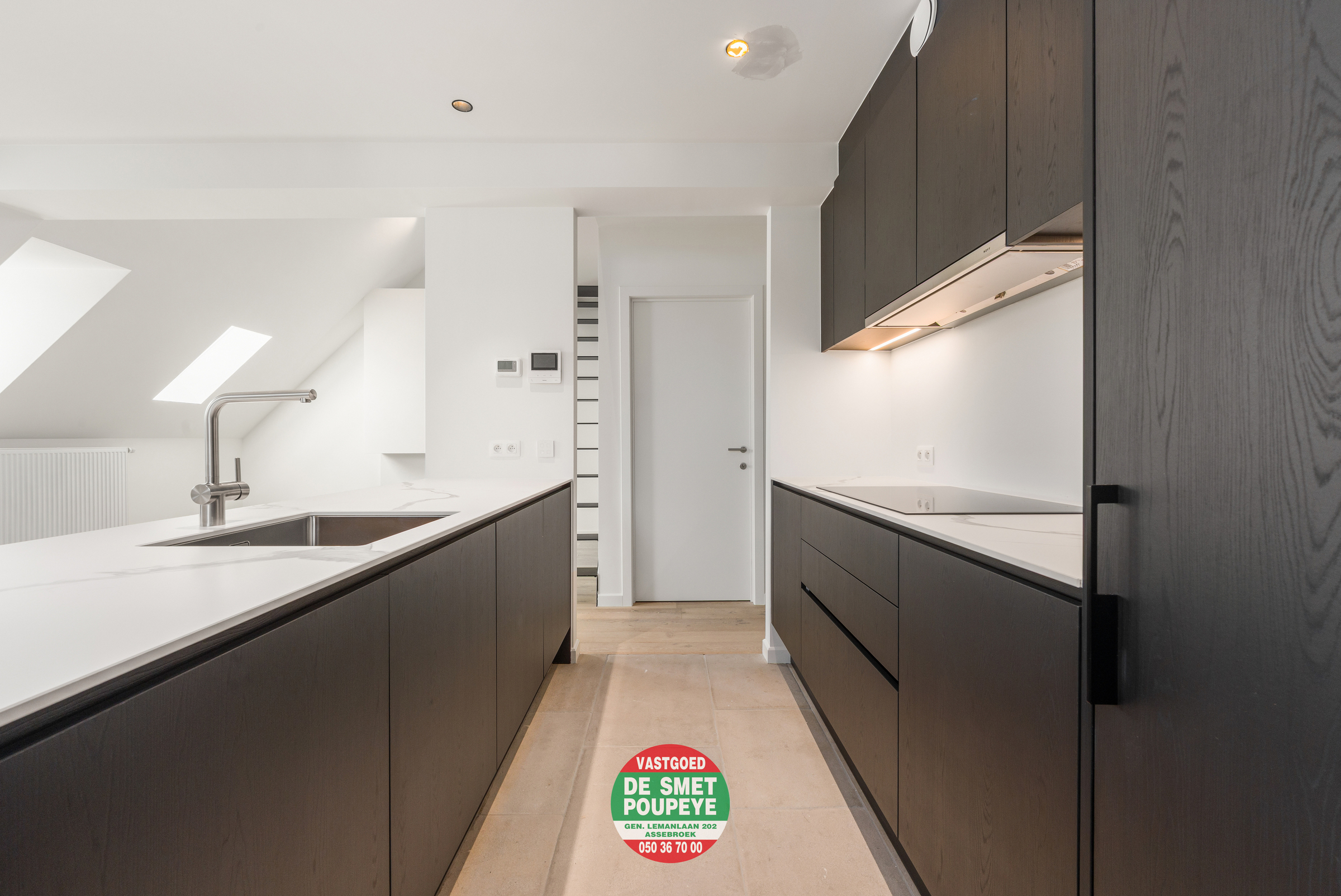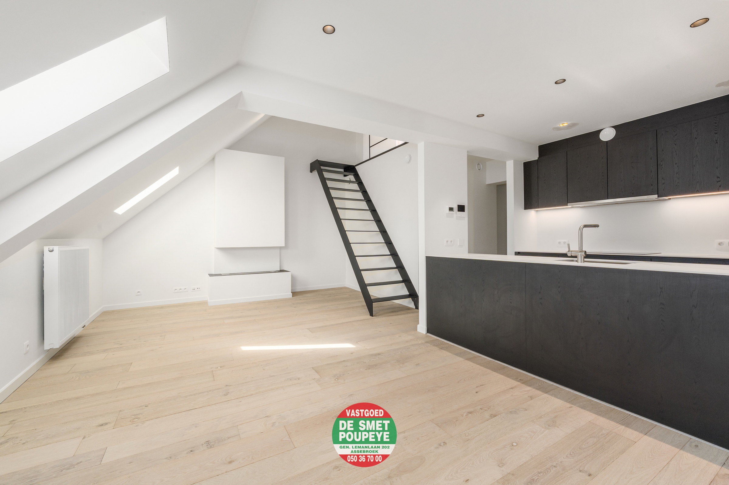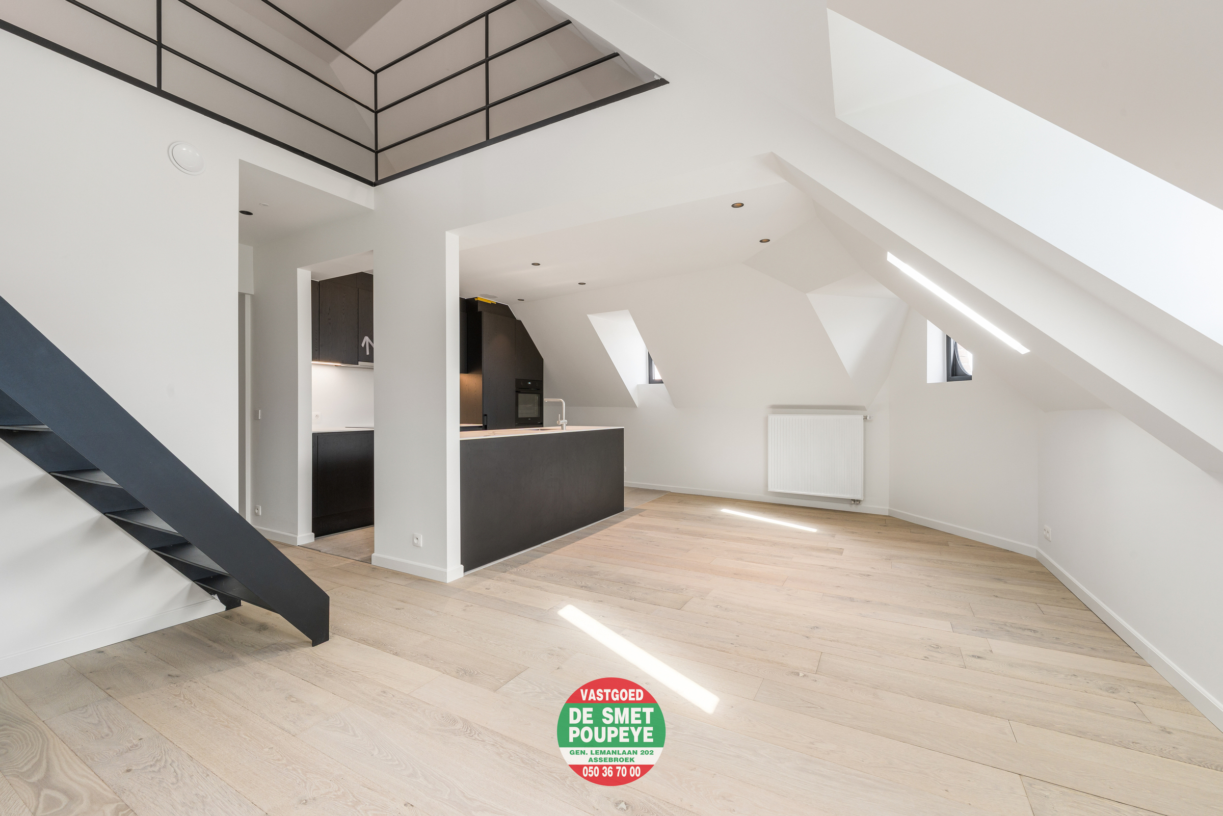 Het betreft een uniek duplex appartement op de hoogste verdieping van de residentie. De renovatie werd grondig en met hoogwaardige materialen uitgevoerd, met bijzondere aandacht voor energiezuinigheid en modern wooncomfort. Zo werd het appartement afgewerkt met parketvloeren en natuursteen, en werd het meubilair — waaronder de keuken — volledig op maat gemaakt. Technisch is het appartement uitgerust met hoogrendementsglas, ventilatiesysteem D en centrale verwarming op aardgas met hoogrendementsketel, wat resulteert in een gunstig E-peil van 67.