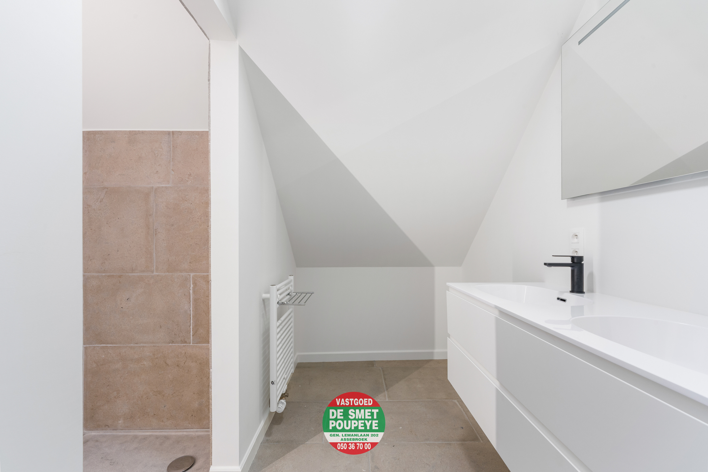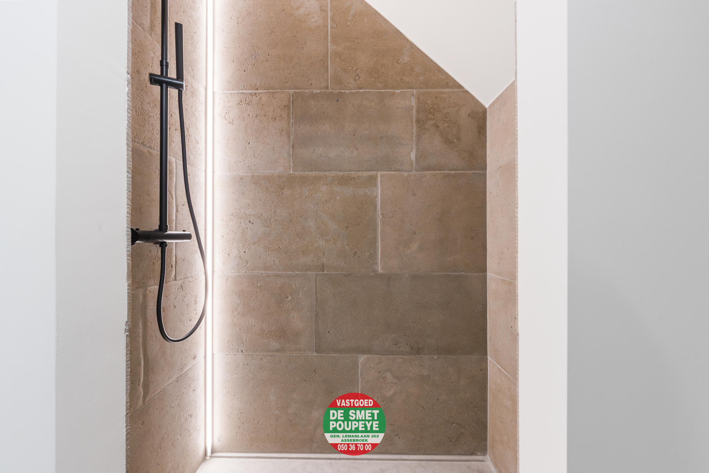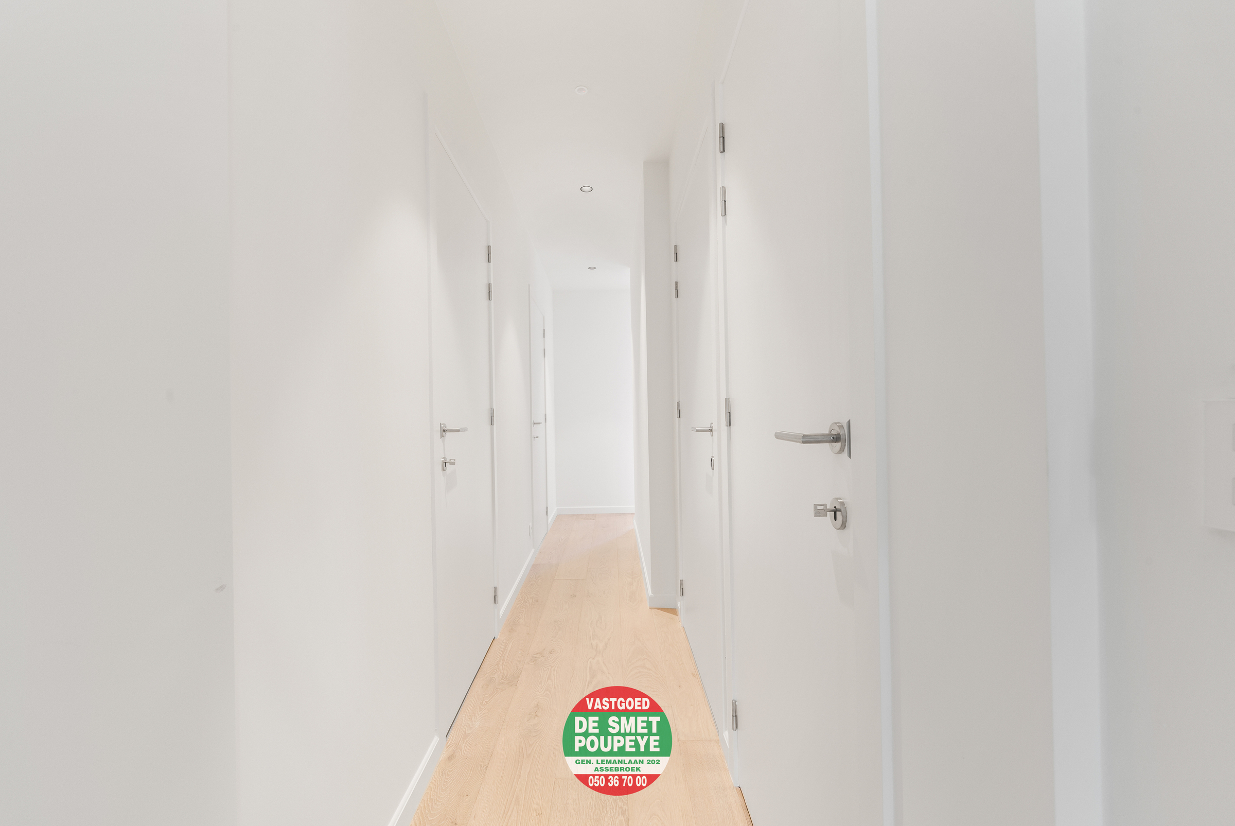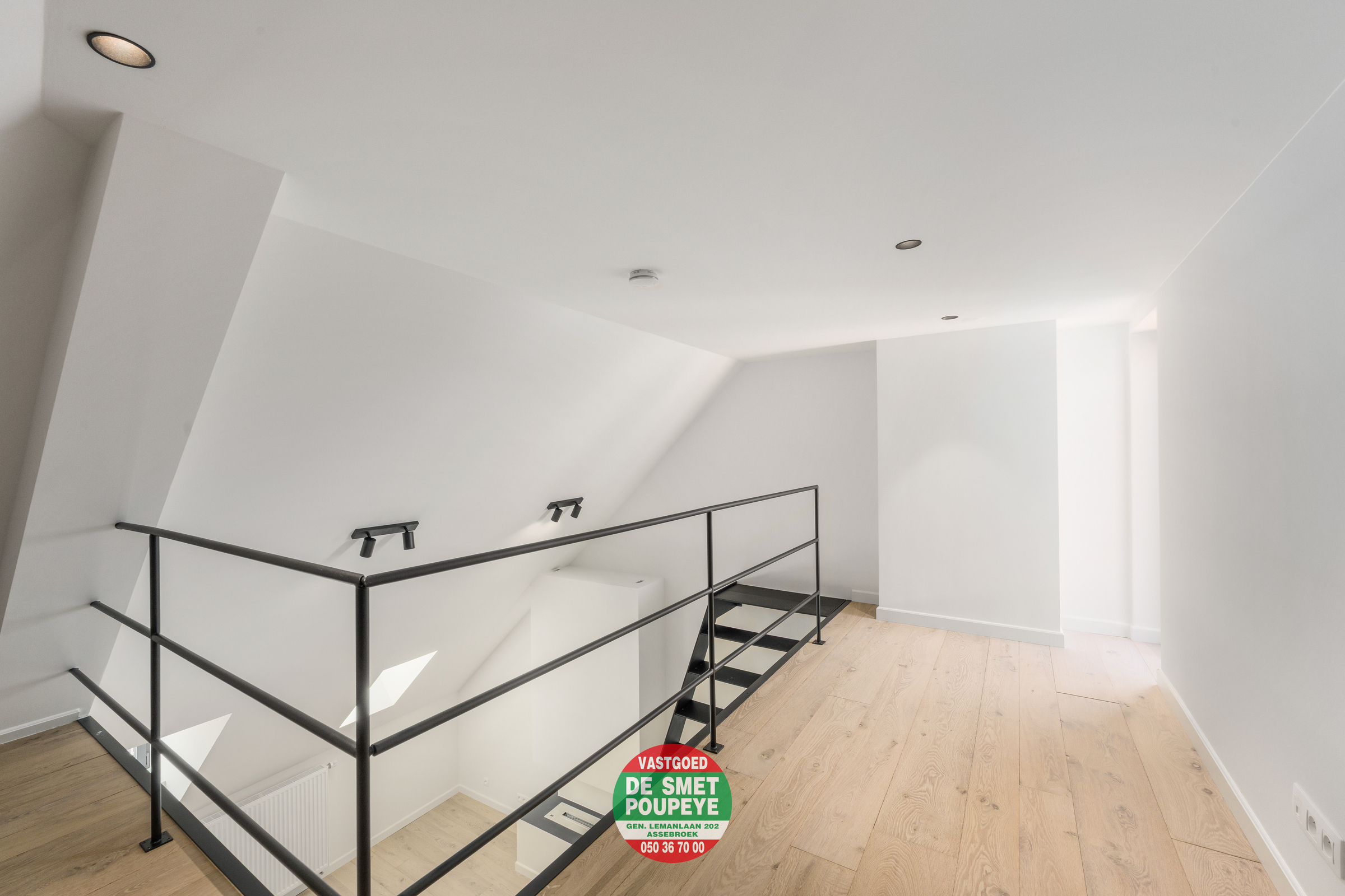 Het betreft een uniek duplex appartement op de hoogste verdieping van de residentie. De renovatie werd grondig en met hoogwaardige materialen uitgevoerd, met bijzondere aandacht voor energiezuinigheid en modern wooncomfort. Zo werd het appartement afgewerkt met parketvloeren en natuursteen, en werd het meubilair — waaronder de keuken — volledig op maat gemaakt. Technisch is het appartement uitgerust met hoogrendementsglas, ventilatiesysteem D en centrale verwarming op aardgas met hoogrendementsketel, wat resulteert in een gunstig E-peil van 67.