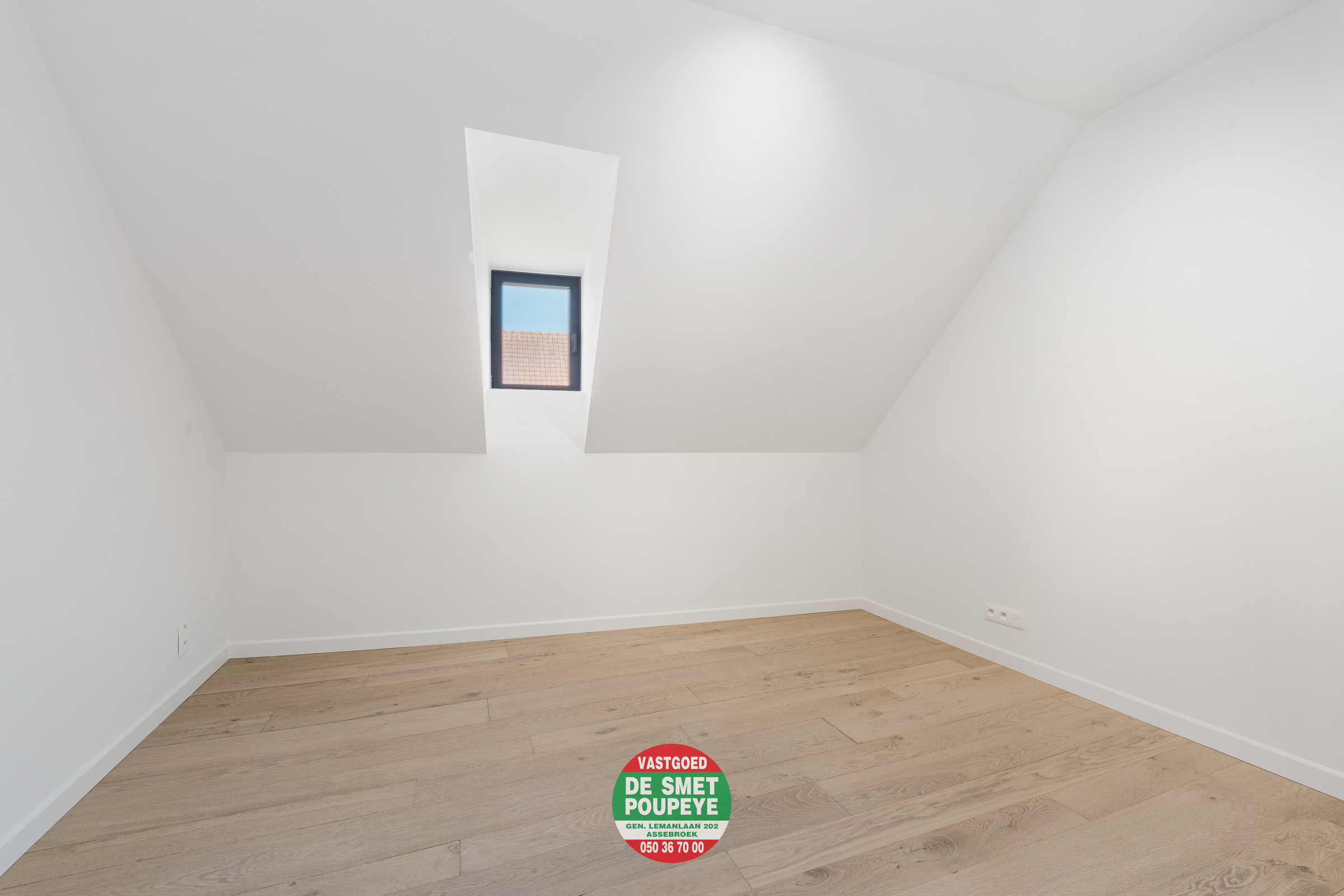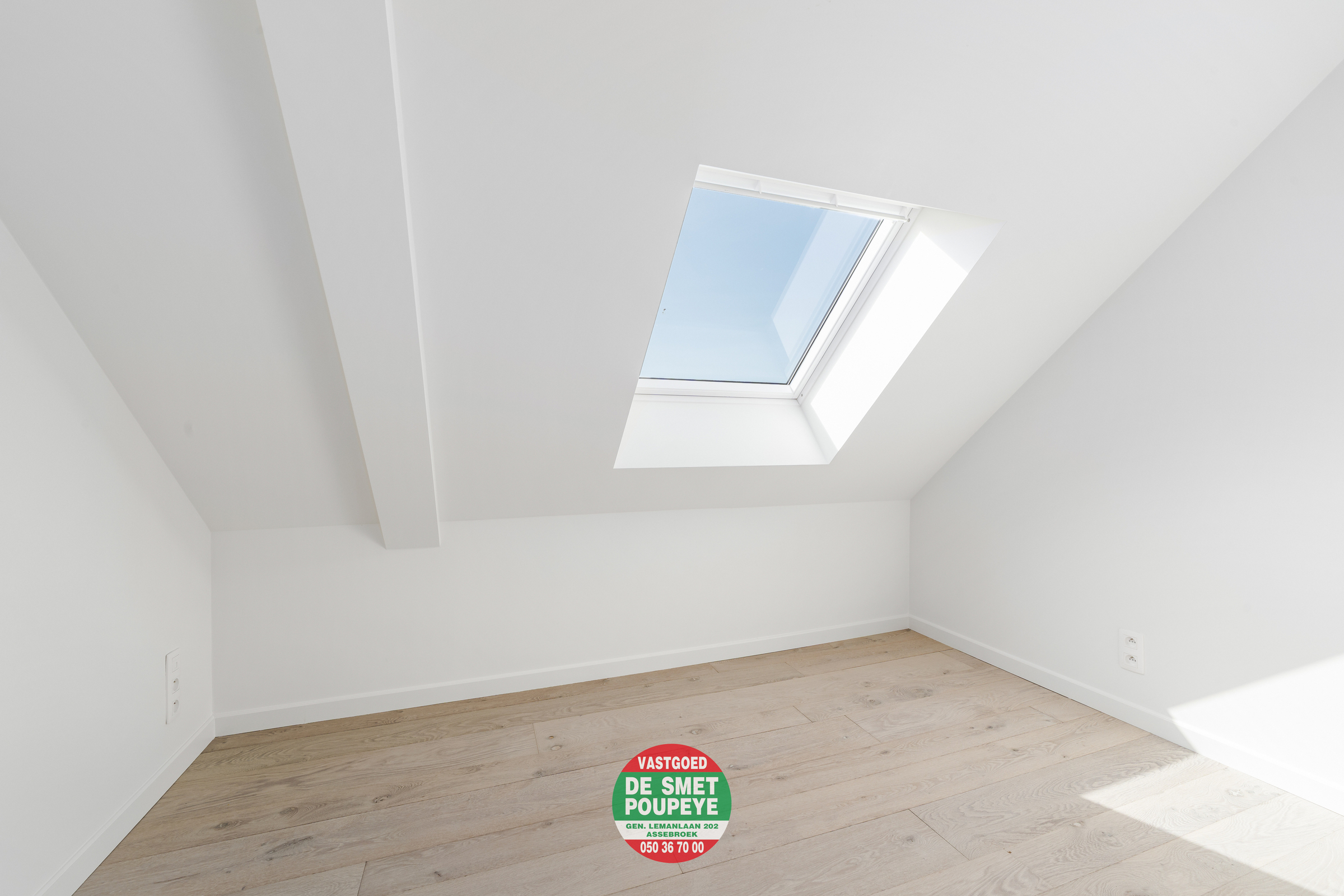 Via een interne trap bereik je het tweede verdiep, dat volledig polyvalent kan worden ingericht. Deze ruimte leent zich perfect als bureau, extra leefruimte, hobbykamer of bijkomende berging.
