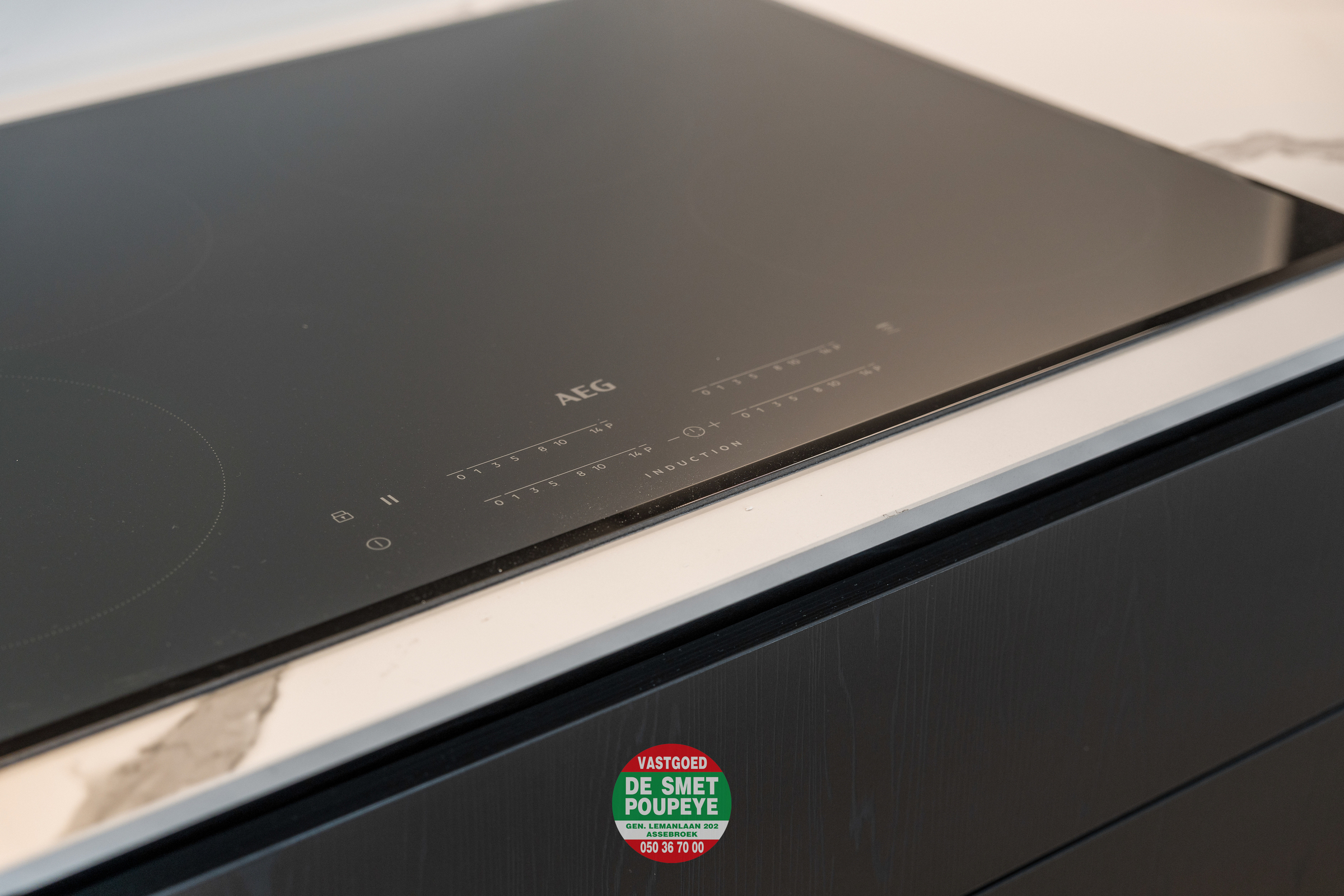 Op het eerste niveau is de indeling identiek en zijn alle ruimtes vlot bereikbaar via de centrale hal. De lichtrijke leefruimte geniet van een aangename lichtinval en is voorzien van een stijlvolle bio-ethanol haard. Aansluitend bevindt zich de open maatkeuken met eiland, hyper-geïnstalleerd met toestellen van AEG. Verder beschikt dit niveau over een praktische berging, een apart toilet en een badkamer met inloopdouche en dubbele wastafel, evenals twee volwaardige slaapkamers.