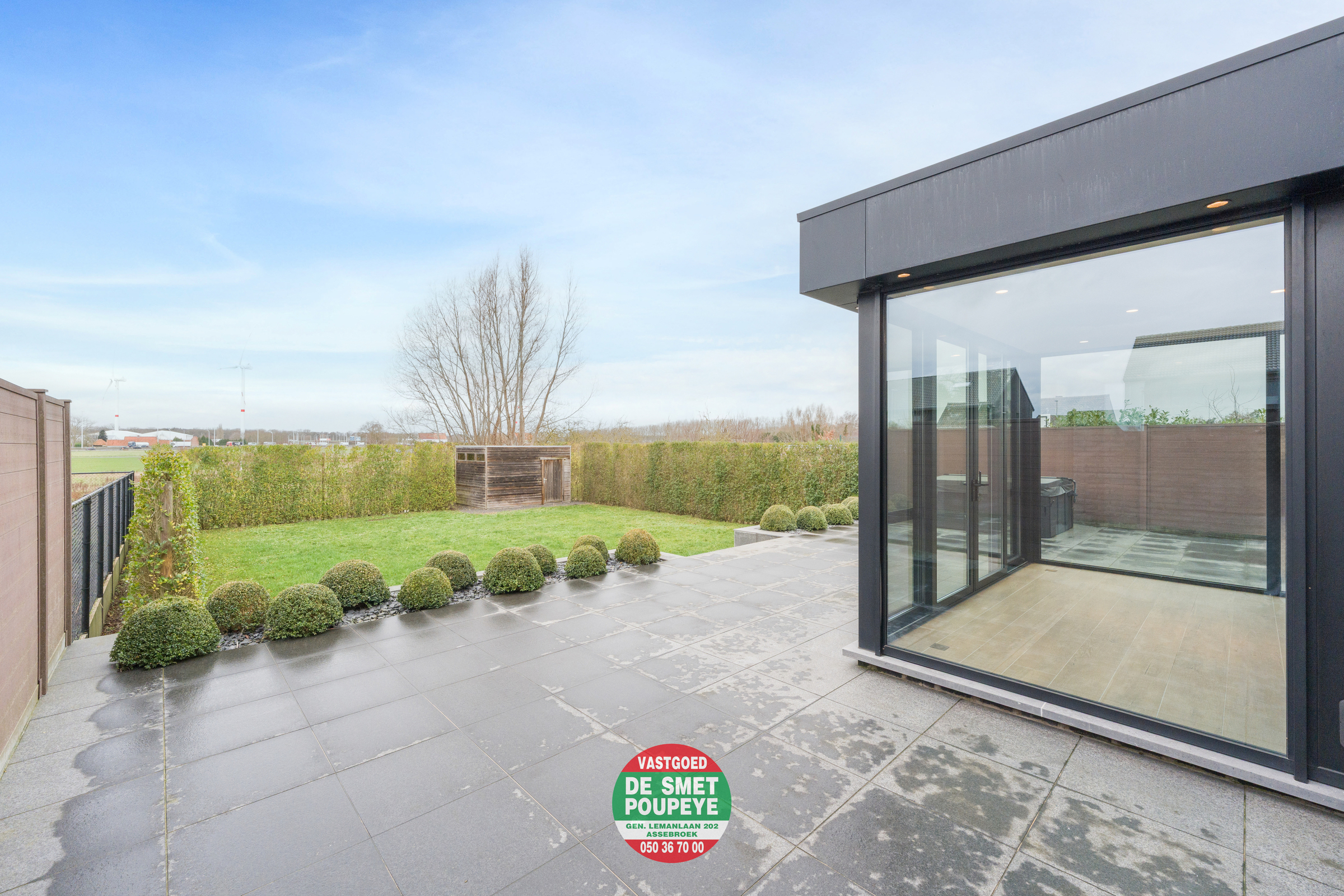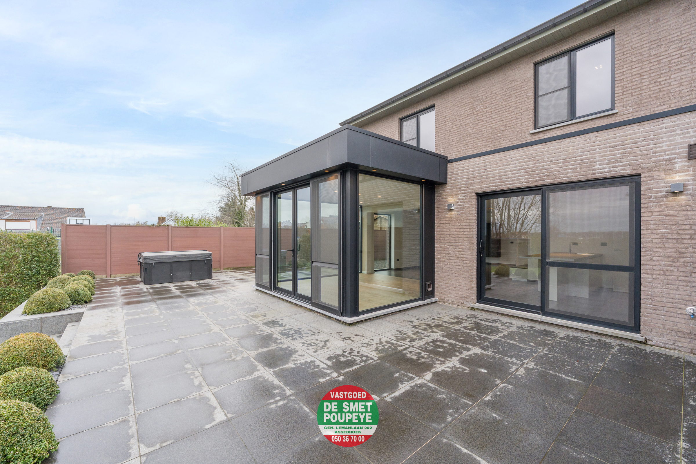 In 2023 werd een moderne glazen aanbouw richting tuin gerealiseerd, die zorgt voor een aangenaam contact tussen binnen en buiten en een aangename natuurlijke lichtinval. De woning is uitstekend geïsoleerd met isolatie in spouwmuren, dak en vloeren en uitgerust met centrale verwarming op aardgas, een ventilatiesysteem C+ en hoogrendementsglas in aluminium kader. In de aangebouwde veranda zijn bovendien zonnescreens voorzien voor extra comfort. Dit alles resulteert in een energiezuinig EPC-label B. Daarnaast is er een regenwaterput van 10.000 liter, aangesloten op de nodige toestellen.