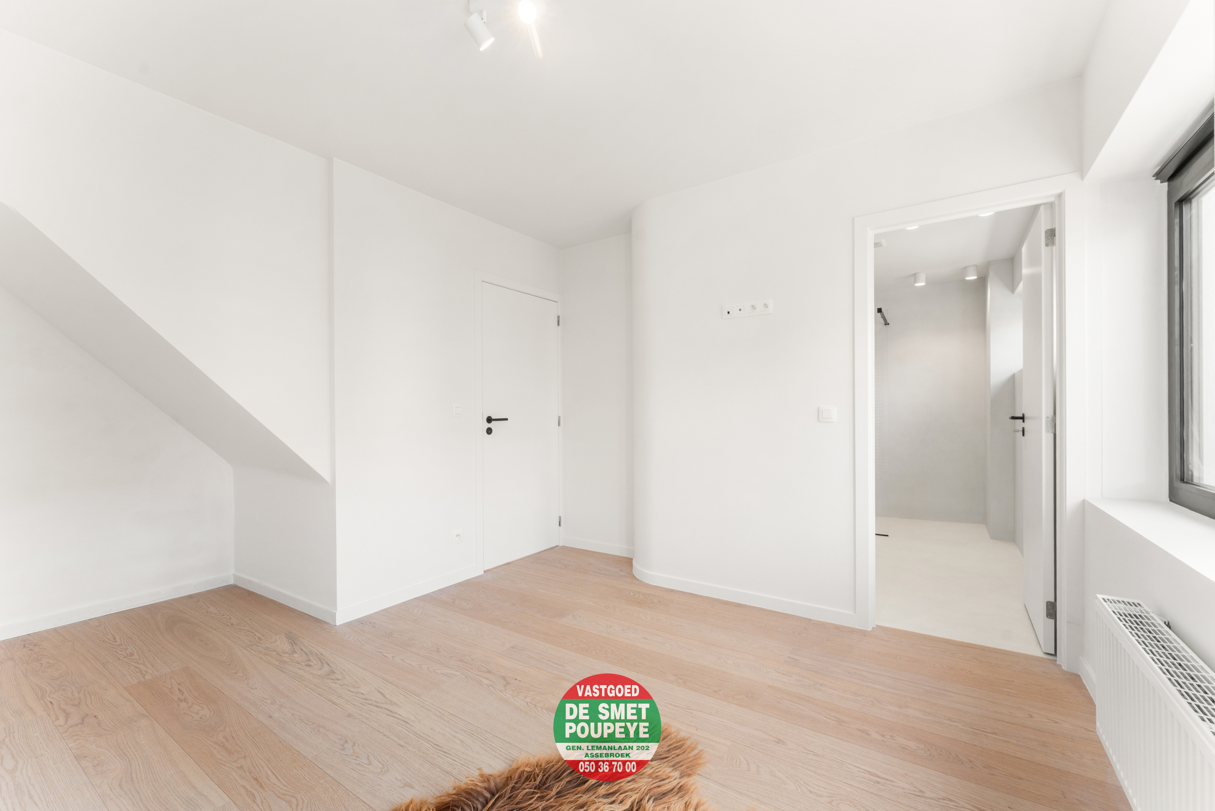 Het tweede verdiep vormt een exclusieve masterverdieping met slaapkamer, dressing, badkamer met inloopdouche en dubbele wastafel (mortex) en een apart toilet.