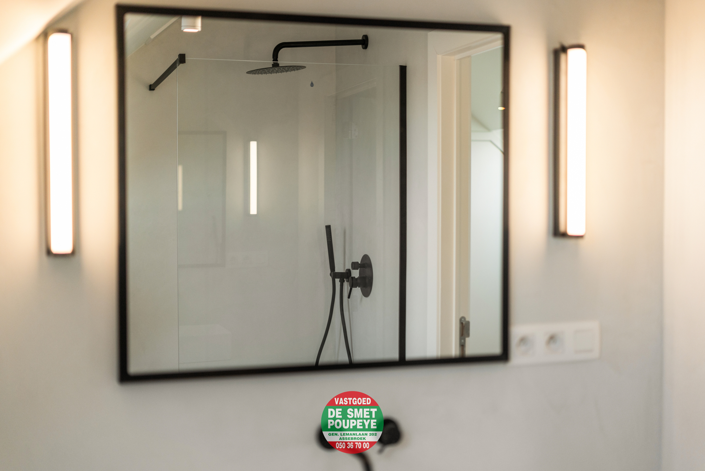 Op het eerste verdiep bevinden zich drie volwaardige slaapkamers, waarvan twee met gedeelde badkamer en één met ensuite badkamer — telkens voorzien van een inloopdouche en wastafel in mortex. Er is ook een apart toilet.